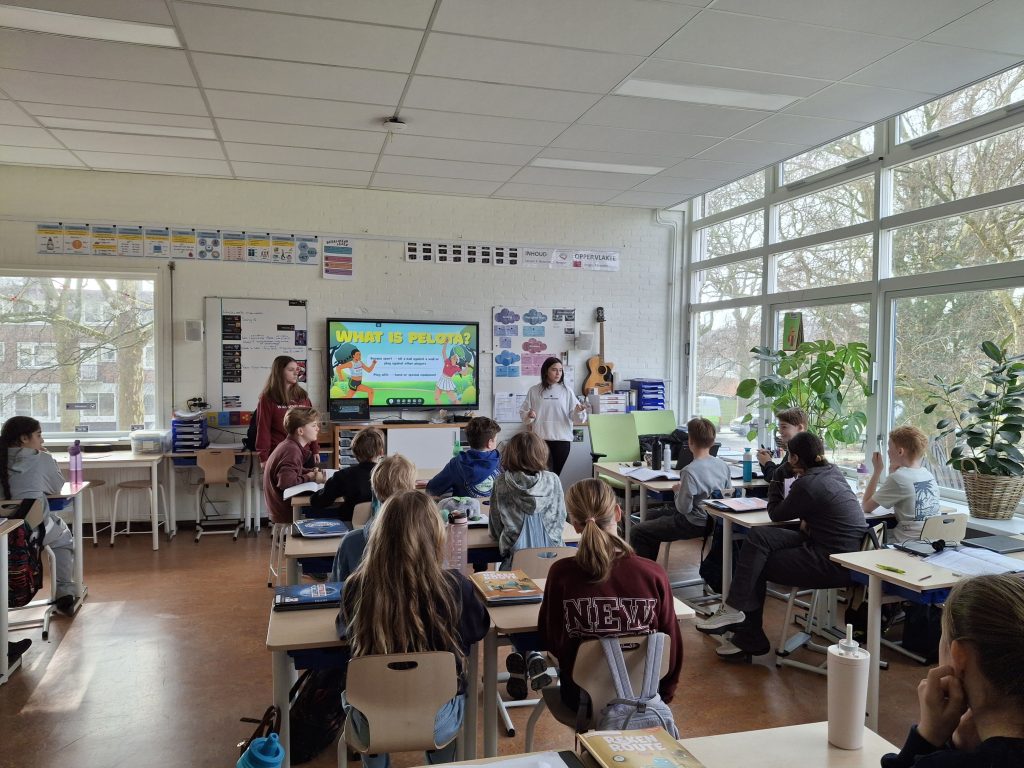Gizarte eta kirol irakaskutza eta animazioko Ayelen eta Irene ikasleak Holandako @Tallandcollege ikastetxean daude marketineko ikasleekin elkarlanean Euskal Pelota kirola promozionatzen.